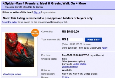 So it would appear Sony is offering a chance to be in Spiderman 4 with a walk in role..as well as crew meet and greets,..all that good stuff..